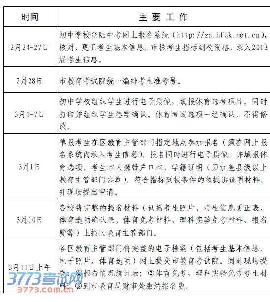 2014年合肥市市区初中毕业学业考试报名阶段工作安排