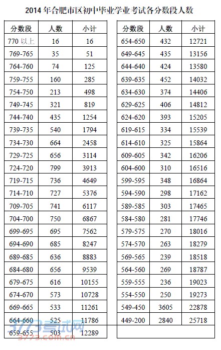 2014 年合肥市区初中毕业学业考试各分数段人数2014 年合肥市区初中毕业学业考试各分数段人数
