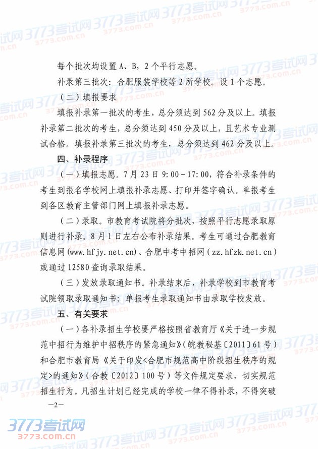 现就2014 年合肥市区普通高中补录工作有关事宜通知如下: