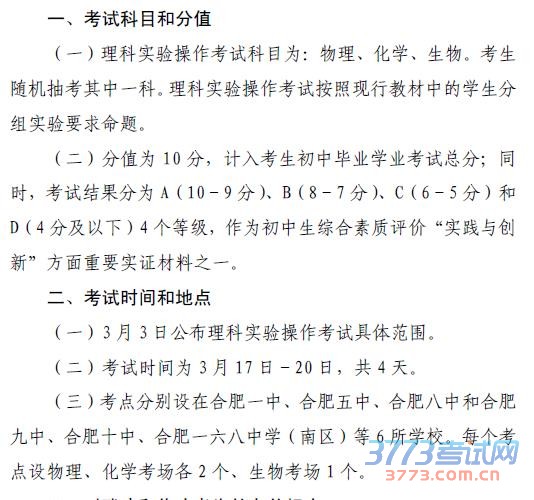 (一)3 月3 日公布理科实验操作考试具体范围。