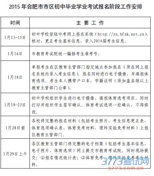 2015 年合肥市市区初中毕业学业考试报名阶段工作安排