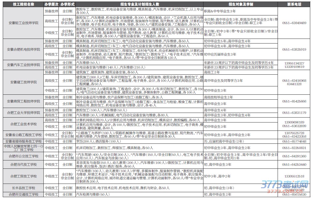 2015年合肥市技工院校(含技师学院、高级技校和普通技校)集中招生工作已经开始。招生方式为各校自主招生、自主录取,初中以上应、历届毕业生和社会人员均可报名入学。