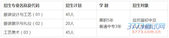 安徽合肥服装学校(合肥31中)隶属于合肥市教育局管辖的公办省级示范普通中专学校, 是经过省教育厅批准、具有提前招生资格的艺术类中专学校。根据安徽省教育招生考试院的安排,2015文化艺术类专业(含高职)继续实行提前单独自主招生考试,今年我校与安徽城市管理职业学院合作举办服装设计与工艺、服装展示与礼仪、工艺美术“3+2” 等艺术类高职专业,实行提前单独招生,有关招生事宜如下:一、招生计划