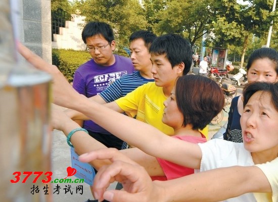 合肥二中考点,看考场的考生多,送孩子来的家长更多,不少家庭都是父母一起出动。本报记者张洪金/摄