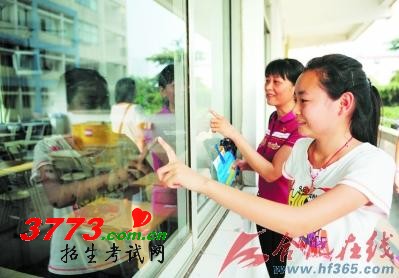 | 昨天下午考生探访考点,在考场外寻找自己的座位号 |