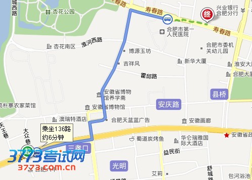 线路1:(最佳线路)在三孝口站乘坐136路公交车,经城隍庙站至市一院站下,步行100米,约6分钟。