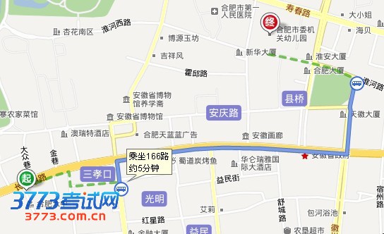 线路2:在三孝口站乘坐166路、快速公交4等在市府广场站下车步行300米。