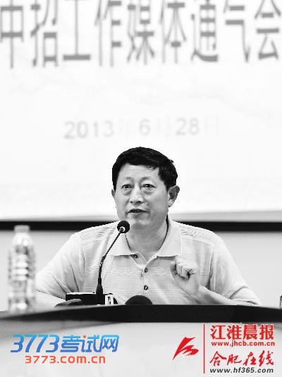 | 合肥市考试院院长陆昌云在中招工作媒体通气会上发言。 |