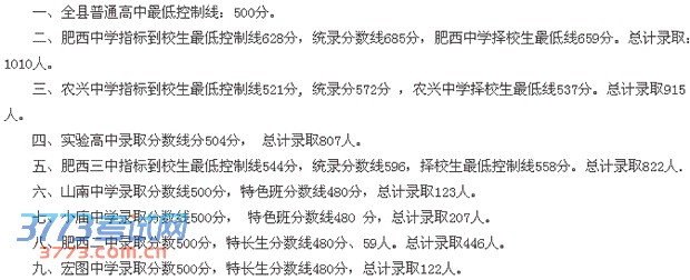 小庙中学录取分数线500分, 特色班分数线480 分,总计录取207人。