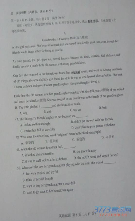 [组图]2015年菏泽中考英语试题及答案免费发布
