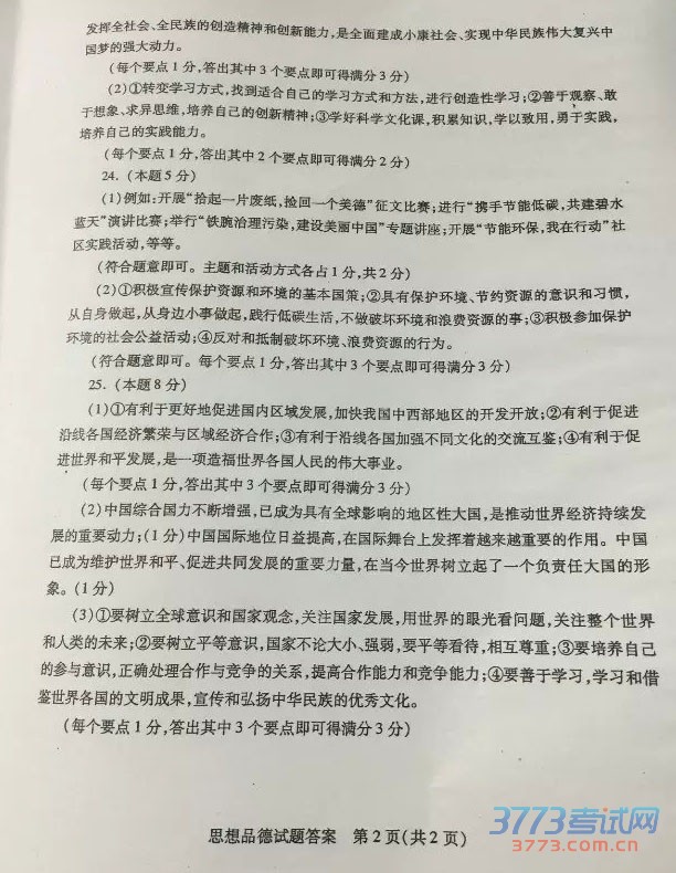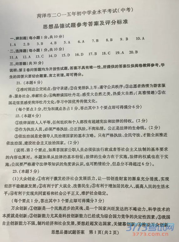 [组图]2015菏泽中考政治试题发布