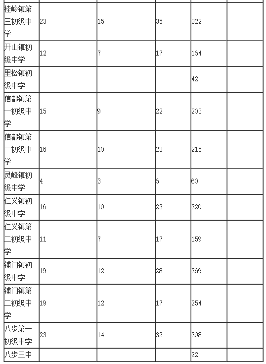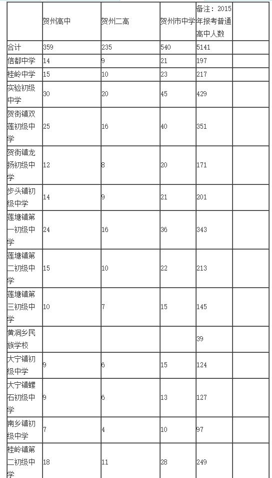 2015年八步区上送贺州市优质高中定向招生名额分配表