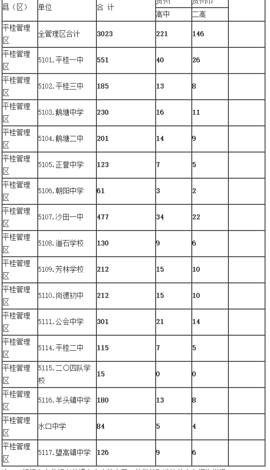 2015年平桂管理区中考报名人数统计及定向招生分配情况表