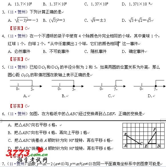 2.(11·贺州)国家统计局发布的第六次全国人口普查公报显示,我国总人口约为1 370 000 000人,1 370 000 000用科学记数法表示为