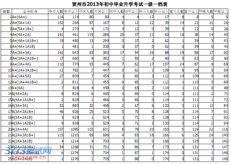 点击下载查看完整版 2013年贺州市中考一级一档表