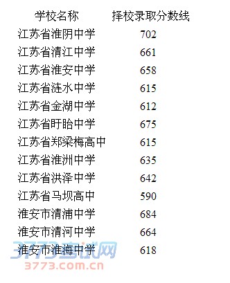 我市四星级高中择校录取分数线已对外公布。其中江苏省淮阴中学择校分数线为702分,江苏省清江中学为661分。