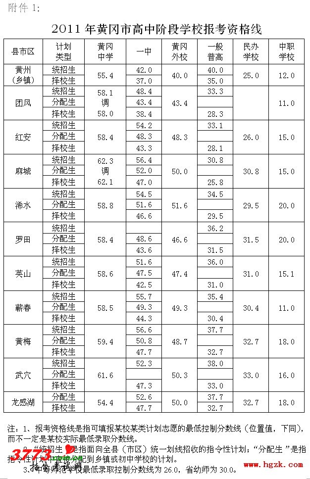 [图文]黄冈市2011年高中阶段学校报考资格线