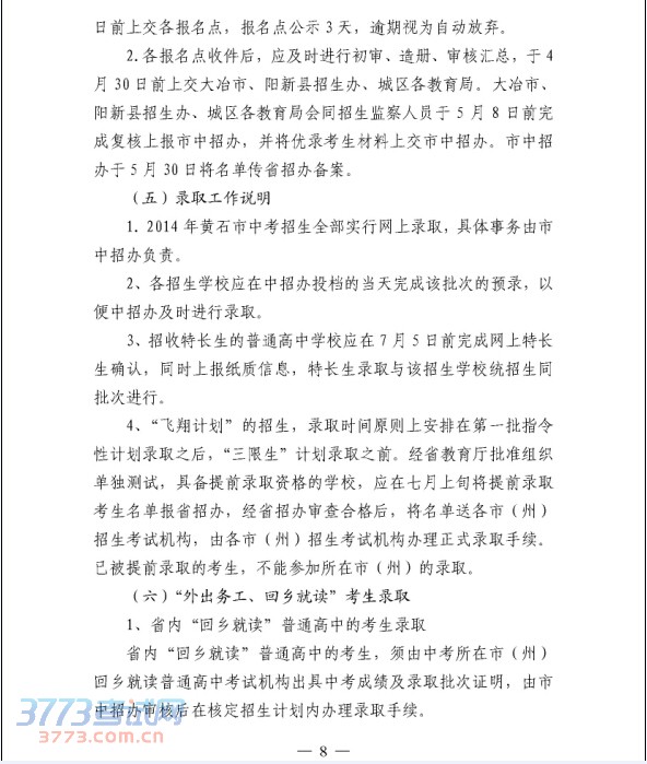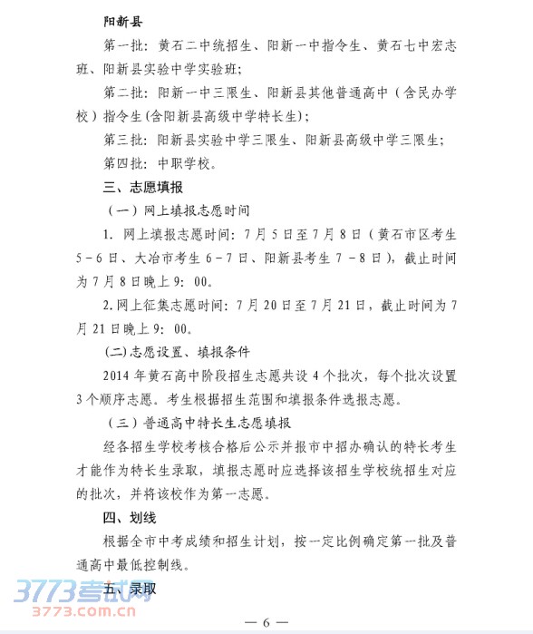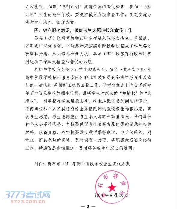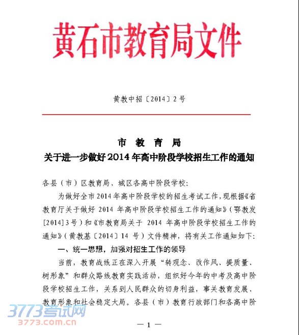 [组图]关于做好2014年黄石中考高中学校招生工作的通知