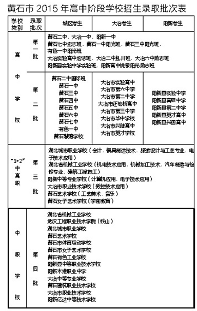 今年,黄石市高中阶段招生志愿共设4个批次,每个批次设置3个顺序志愿。(具体见左下表格)