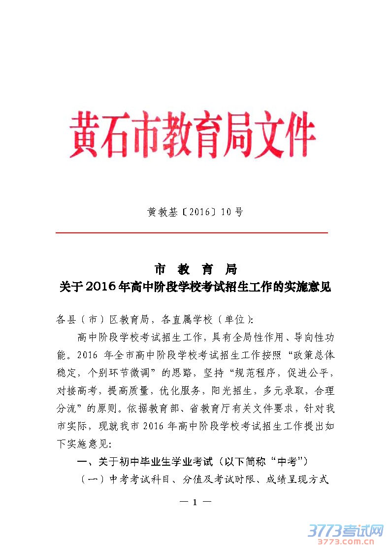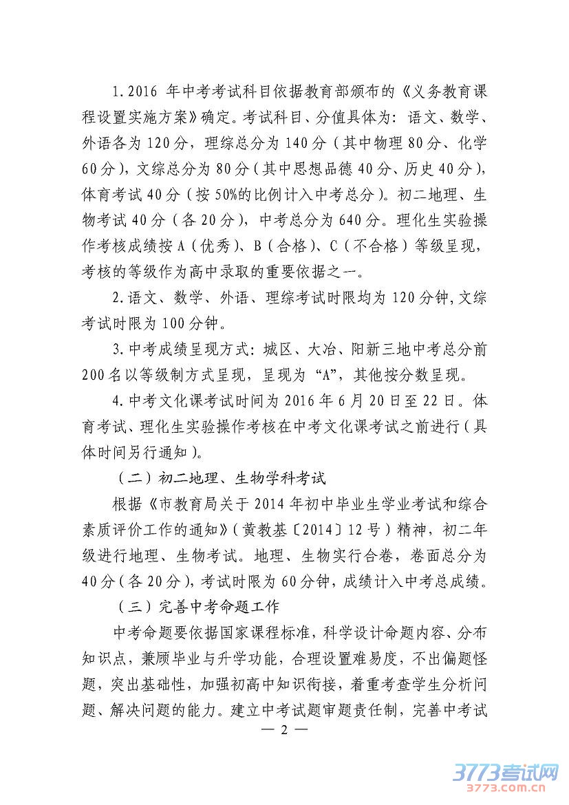 市教育局关于2016年高中阶段学校考试招生工作的实施意见