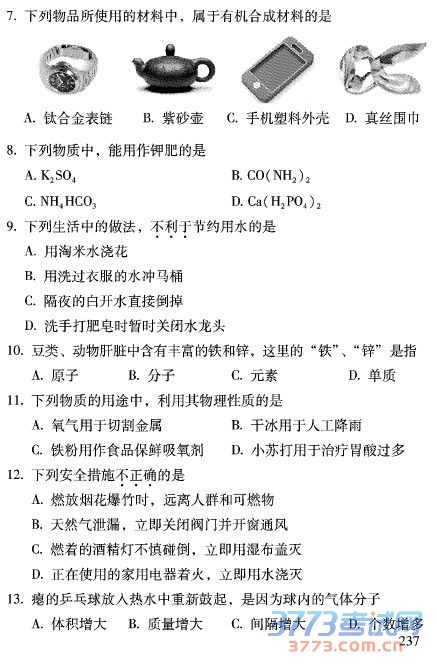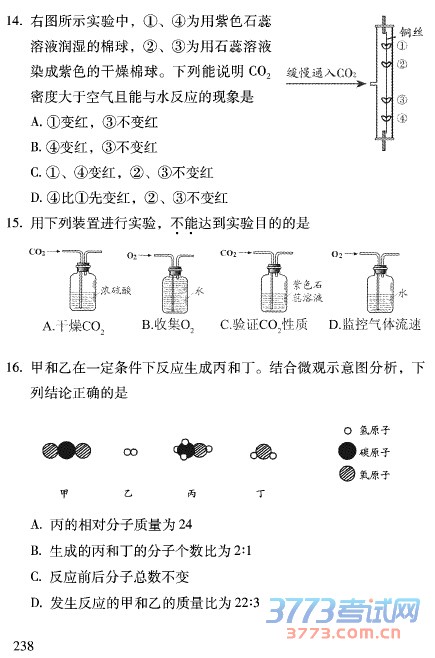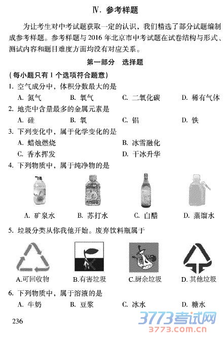 2016北京中考考试说明已经发布,下面是化学试卷参考样题及答案。