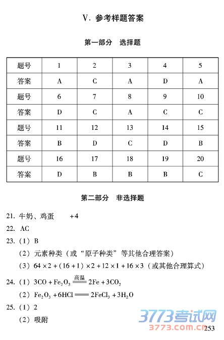 [组图]2016北京中考化学试卷参考样题及答案