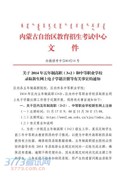 [组图]2014内蒙古五年专和中职录取新生网上电子学籍注册等有关事宜的通知