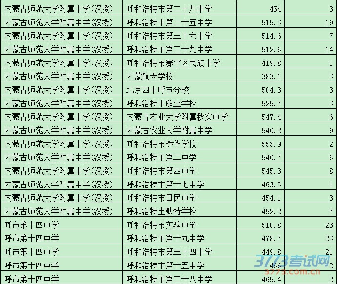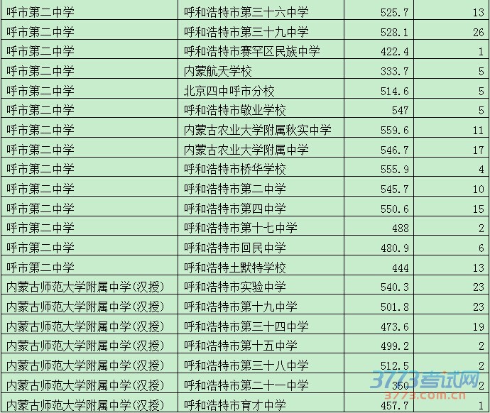 [组图]2015呼和浩特中考高中分招录取分数线公布