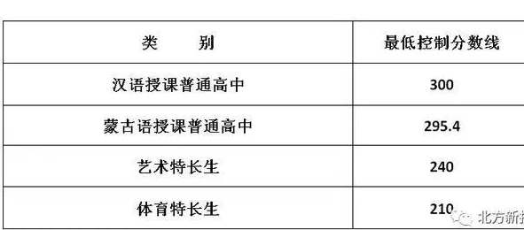 呼和浩特市市区2018年普通高中统招最低控制分数线为:汉语授课普通高中300分,较去年的320分降低 20分;蒙古语授课普通高中295.4 分,较去年的309.7 分降低14.3 分;艺术特长生240分,较去年的256分降低 16分;体育特长生210 分,较去年的224分降低14 分。