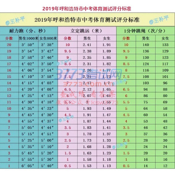 因此,2019年呼和浩特中考体育测试项目为:1、男生1000米,女生800米,2、立定跳远(男女同项),3、一分钟跳绳(男女同项)