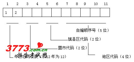 考生号(年份2位+盟市旗县代码4位+流水号5位) |