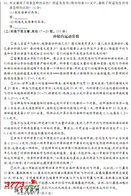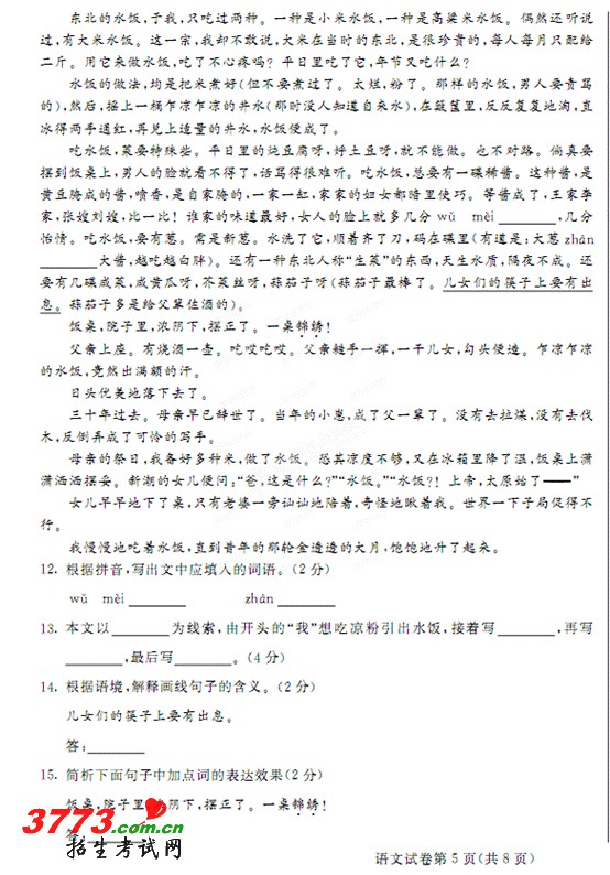 [组图]2012年内蒙古呼和浩特市中考语文试题及答案