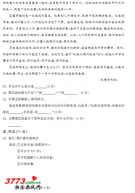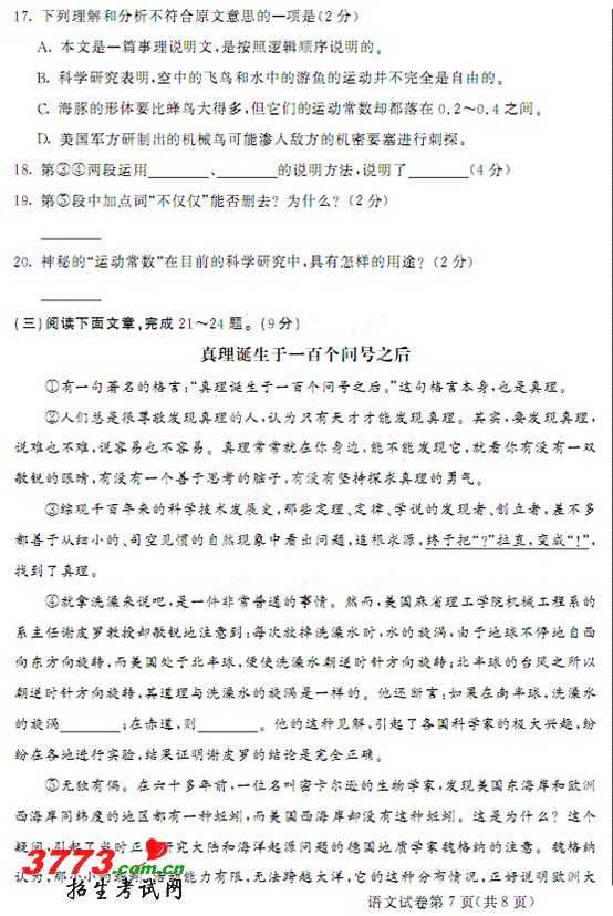 [组图]2012年内蒙古呼和浩特市中考语文试题及答案