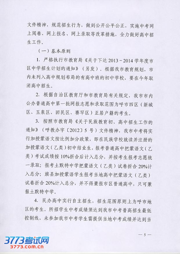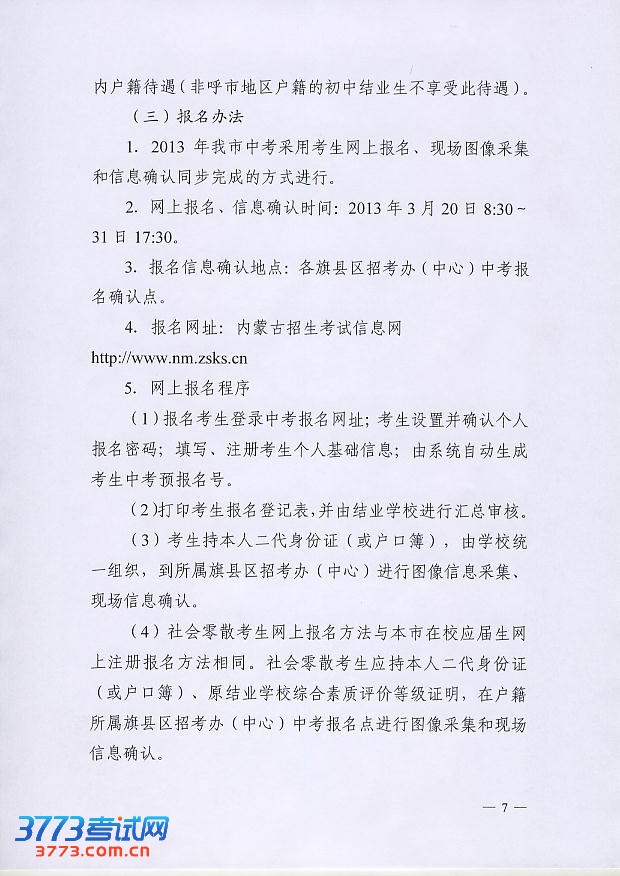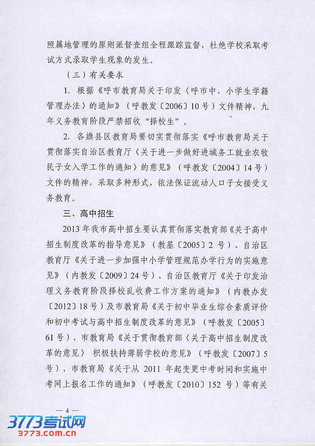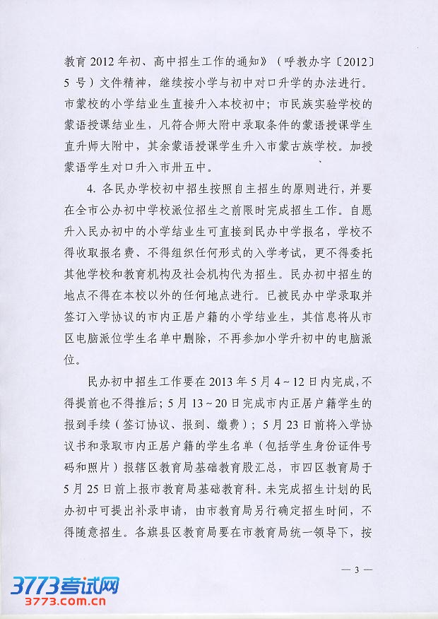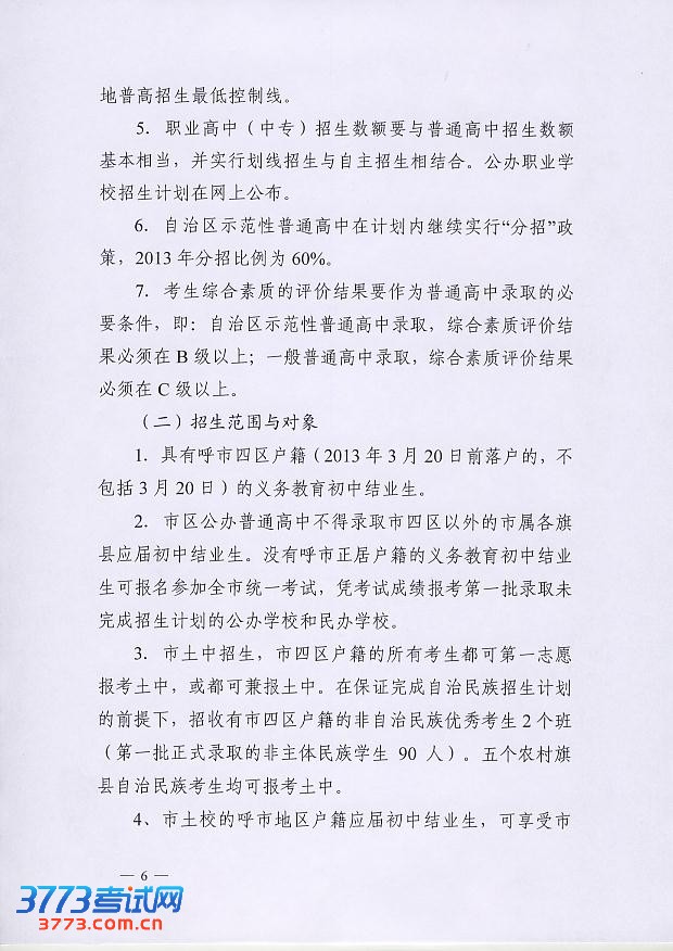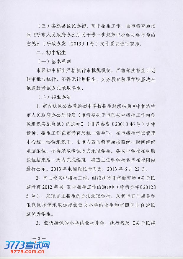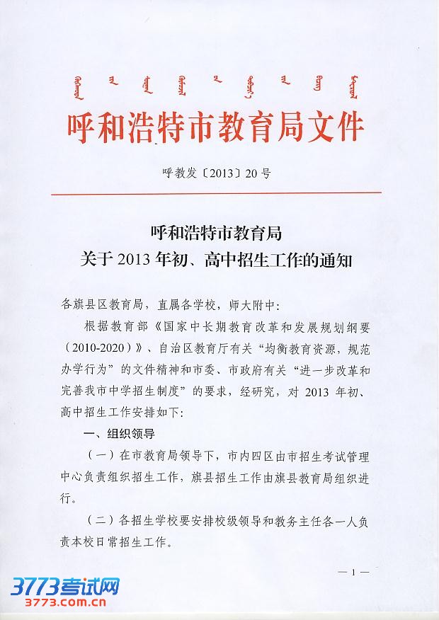 [组图]2013年呼和浩特初中高中招生工作的通知