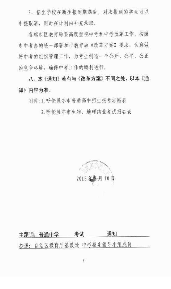 (5)海一中、海二中、牙克石林业一中要及时将录取结果通报有关旗市区中考办。