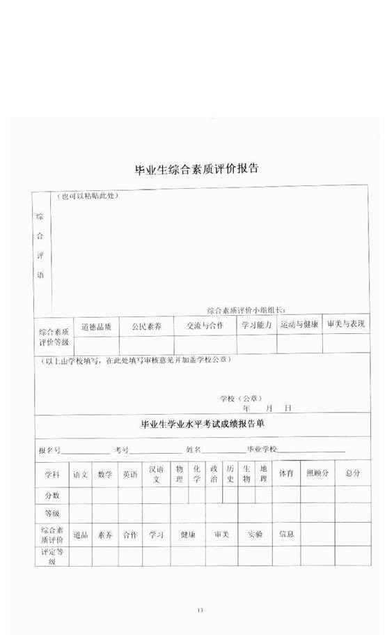 综合素质评价结果、实验操作及信息技术考查成绩均要录入计算机报名系统,于6月15日以前上报。