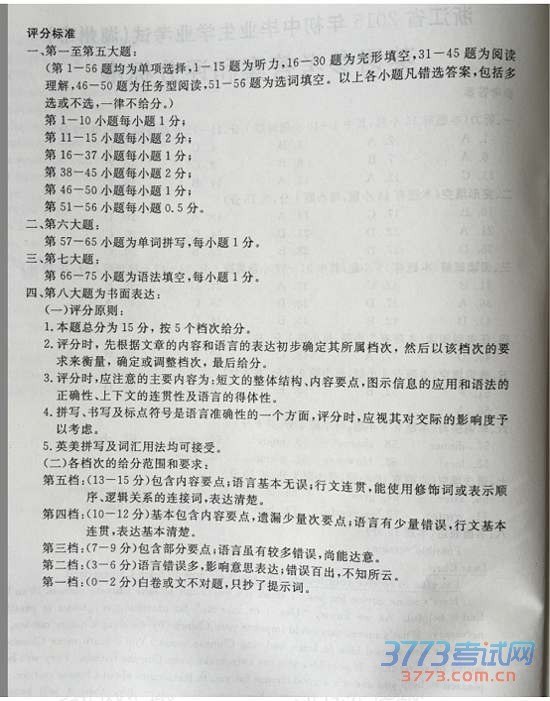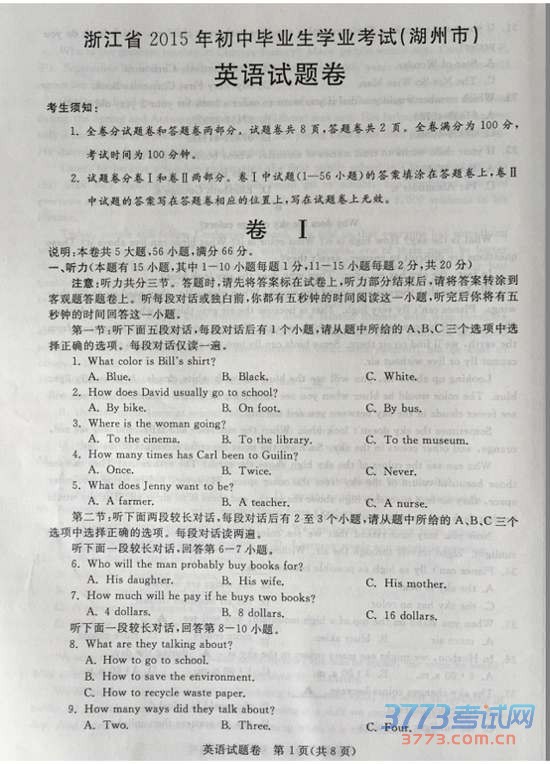 公布湖州中考试题、答案和中考作文。祝各位考生都能取得好的成绩。2015湖州中考英语试题及答案(图片版):