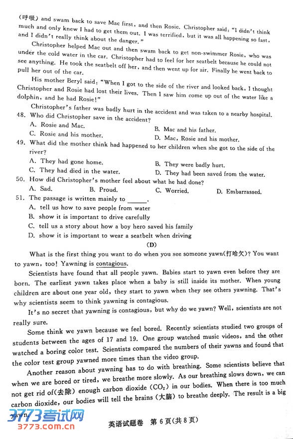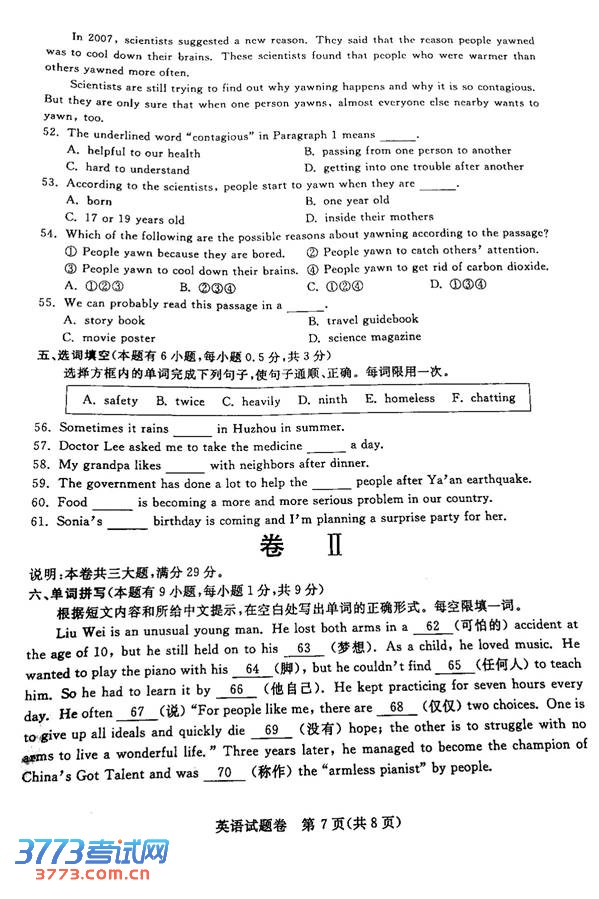 [组图]2013湖州中考英语答案评分标准(含试题)