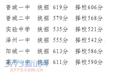 2014晋城高平一中录取分数线 统招生 择校生分数线公布