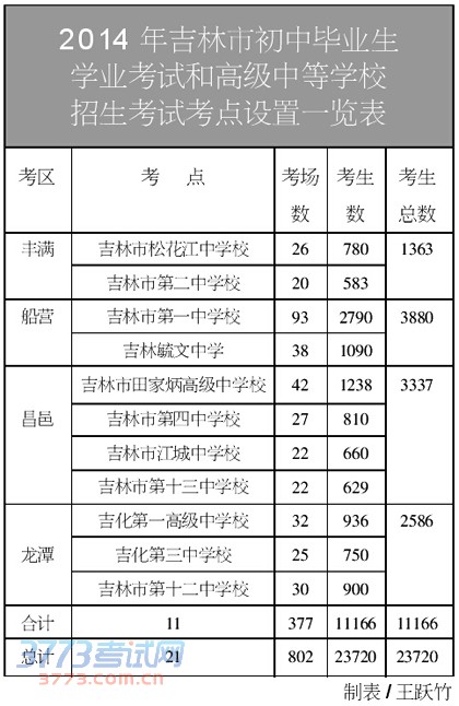 全市中招统一考试时间为6月27日至29日。吉林市共设21个考点,共计802个考场。其中,城区设11个考点,有377个考场。