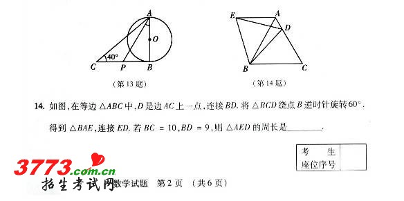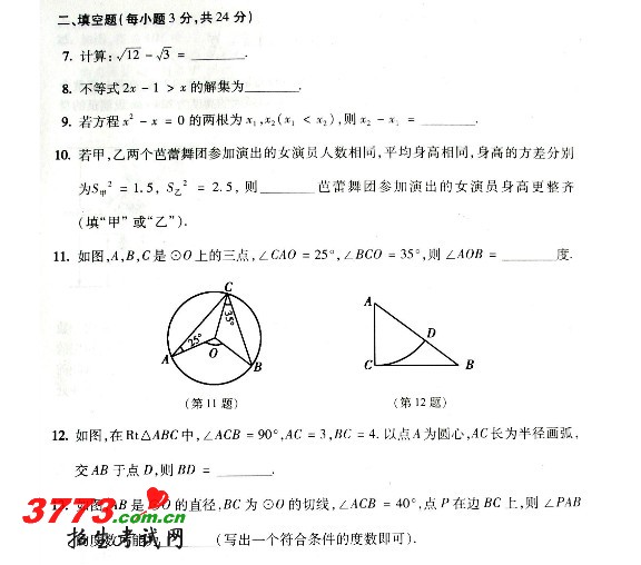 [组图]吉林省2012年中考数学试题试卷及答案