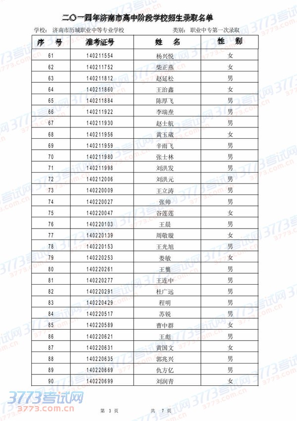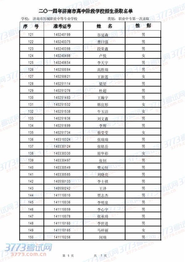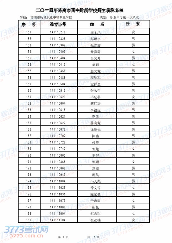 [组图]2014济南市历城职业中专学校录取名单(第一次)