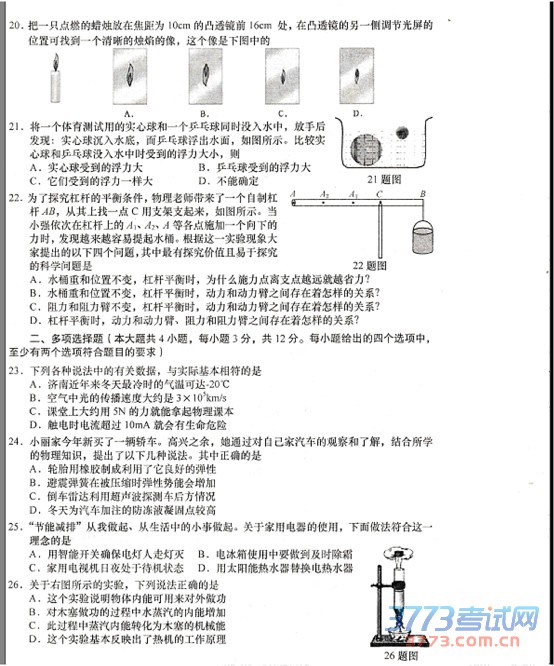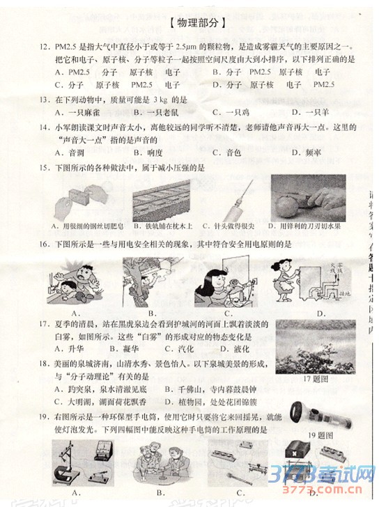 [组图]2015济南中考物理试题免费发布