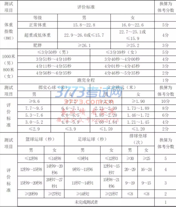2、身体形态、身体素质和运动技能的测试成绩换算为体育考试成绩的标准如下表: