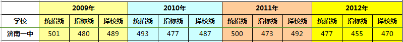 济南一中历年中考分数线,汇总2009年至2012年中考分数线,包含指标生录取分数线,统招生录取分数线,择校生录取分数线,以供2013年济南中考志愿填报及其他参考。