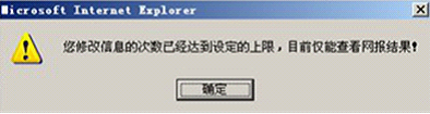 6、信息成功提交后,系统显示“您的志愿:XXX填报成功!”。信息成功提交后,系统退出并跳转至登录页面。再次登录后可以查看或者修改填报的志愿信息。注意:全市每次志愿填报时段内学生填报志愿成功后,有2次修改机会,修改次数达到上限后,系统将禁止修改信息(图8)。