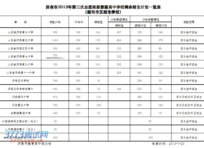 [图文]济南市2013年中考第3次志愿填报剩余计划