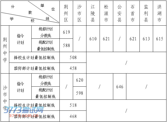 [图文]荆州市2013年省级重点高中招生录取分数线