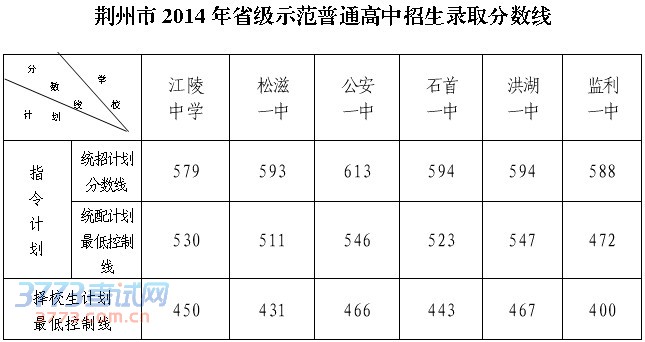 [图文]荆州市2014年省级示范普通高中录取分数线