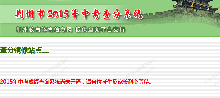 2015年湖北荆州市中考成绩将在 7月2日下午2:00公布,届时考生可在荆州中考招生网上进行网上查分,祝各位考生能够取得一个好成绩!